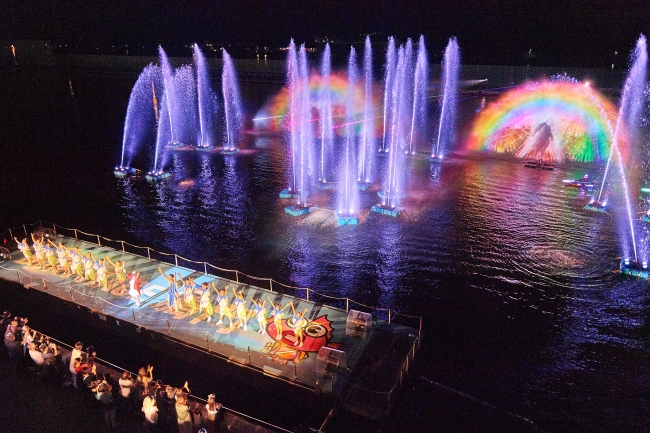 競走水面に噴水とウォータースクリーンを作り、プロジェクターやレーザー照射によりイルミネーションを作り出すショーを行っています!