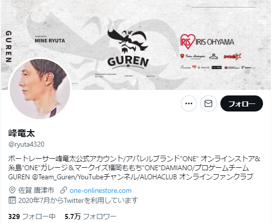 Twitterのフォロワーランキング第1位は、峰竜太選手だ。