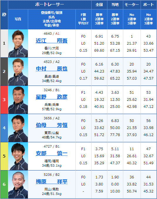 - 【3号艇】B1:星野政彦(ほしの・まさひこ)兵庫支部