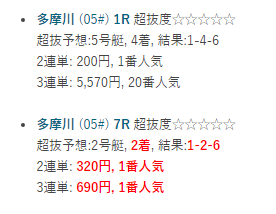 結果は1レースのみ的中で回収率は50%ほど。