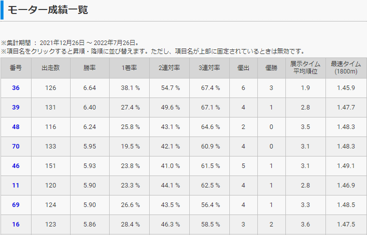 また、ボートレース公式サイトにある1997年5月1日以降のデータを保持しており、これを元に各種データを集計・算出している。