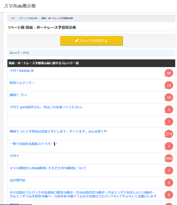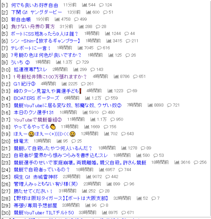 数ページにわたって謎のスレが並んでいて、競艇関係のスレッドは一つたりとも見つける事は出来ませんでした。