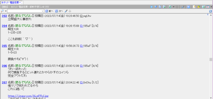 スレッドにはレースに関するトークや賭け方についての話、果てはアンチスレなどがあったりします。