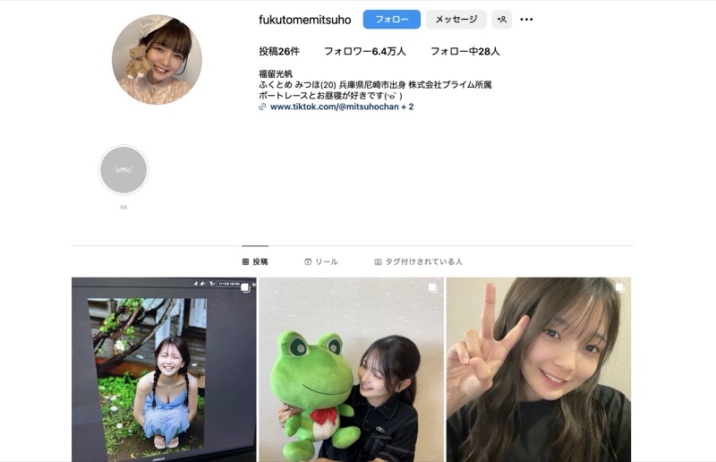 Instagram内ではボートレース場での写真も多いため、福留光帆とボートレースデートに訪れたような気分になりますね。