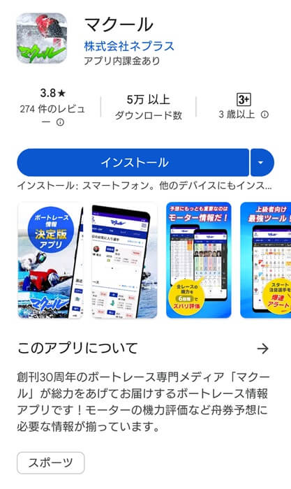 ボートレース関連のアプリを探すと上位に出てくるのが、「競艇マクール」のアプリ版ですね。