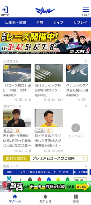 - 競艇マクールアプリ版は有名な競艇雑誌マクールのアプリ版