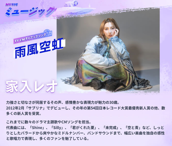 2025年CMの主題歌である「雨風空虹」を歌うのは家入レオさん!