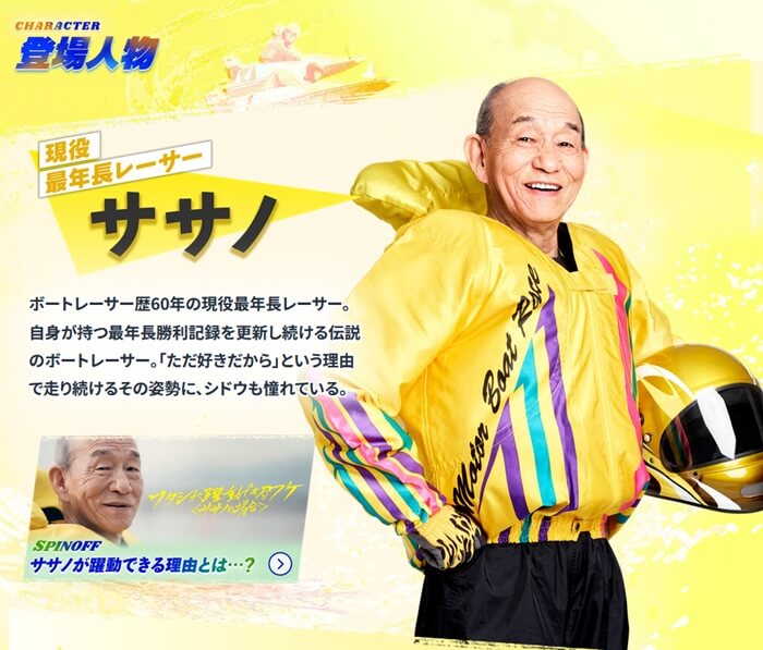 笹野高史は2025年のボートレースCMにてササノ役を演じており、ササノは高塚清一がモデル。
