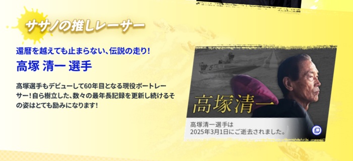 今回は2025年3月3日に日本モーターボート競走会からもたらされた、高塚清一の訃報についてお知らせしてきました。