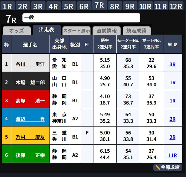 しかし高塚清一は同日の1Rに1号艇からの出走で6着をとってしまうなど、この時点で既に不調が表れていたのかもしれません。