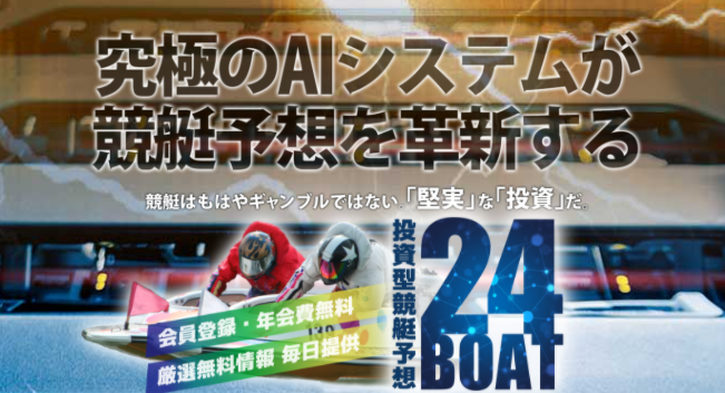 24BOATは、究極AIシステム「アタリブネ」を武器に、予想の制度が高いとユーザーからも言われている競艇予想サイトです!