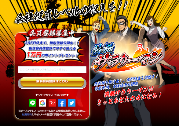 続いては、サラリーマンを題材としていて、データ管理による情報蓄積と人材知識を武器にしている競艇予想サイト「競艇サラリーマン」を紹介していきます!