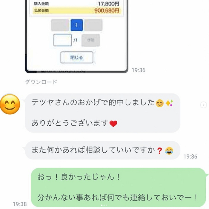 Instagramでは、投資家テツヤさんからアドバイスを貰って高額当選をした人の的中報告や、テツヤさんへの感謝をコメント欄から確認できます!