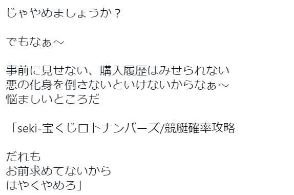 「seki-宝くじロトナンバーズ/競艇確率攻略 だれも お前求めてないから はやくやめろ」