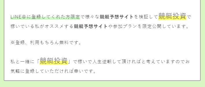 よくわからない競艇予想インフルエンサーのLINE@に登録することも危険だけど、私が気になったのは変換ミス。