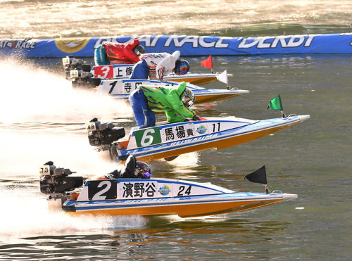 体が硬くなってしまったという馬場貴也選手でしたが、バックストレッチでは良モーターに助けられ、後続艇を抑え込んで2マークを先マイ。