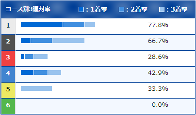 コースの得手不得手では2コースを得意だと自負していて、思い切りのいい差しやまくりを見せる事があるのでモーター次第では1着もありえる。