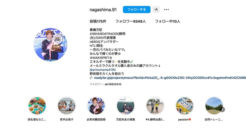 ストーリーズのハイライトも多く、Instagramを使いこなしていることがわかるわ。