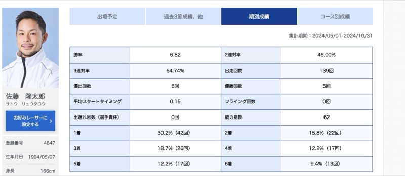 佐藤隆太郎(さとう・りゅうたろう)は115期のボートレーサー