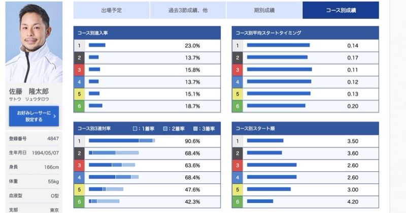 得意コースはインコースだが4コースの3連対率が非常に高い