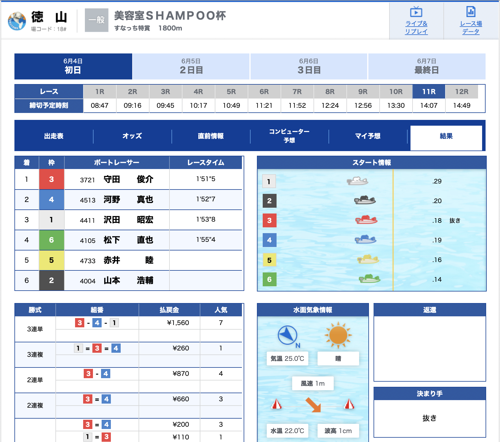 本当に的中するかどうか不安だった1レース目の結果は「2-3-4」でなんと的中しました! オッズは41.8倍、125,400円払い戻しとなり、滑り出し成功! 的中して良かったですが次のレースで当たらなければ予想を購入した意味がありません! 次のレースは鳴門10R。