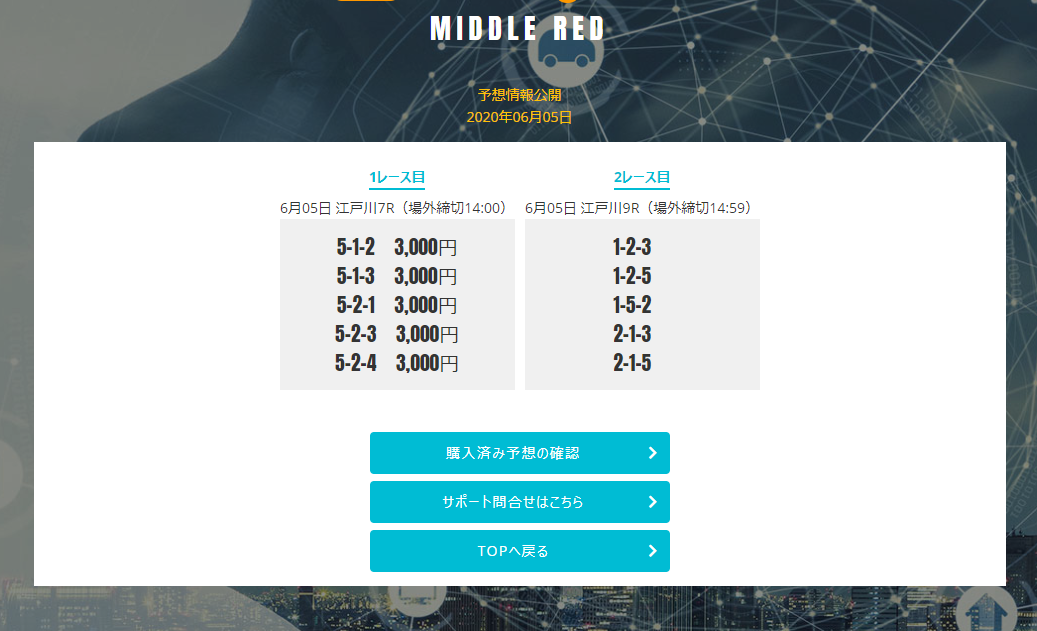 その後は、サポート対応が素晴らしいスタッフさんに訊ねてオススメの予想を買ってみたり、ミドル〜ハイクラスの有料予想に挑戦するもいいかもしれません。
