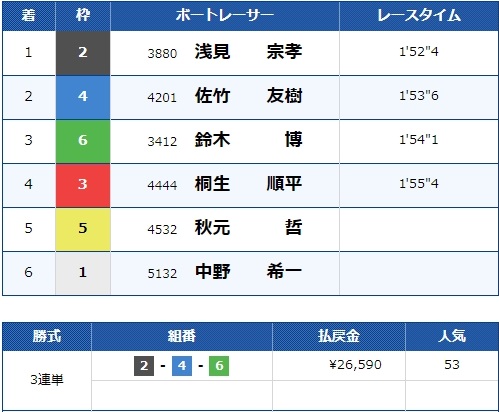 - 【1号艇】:三浦 洋次朗選手(A2/愛知)