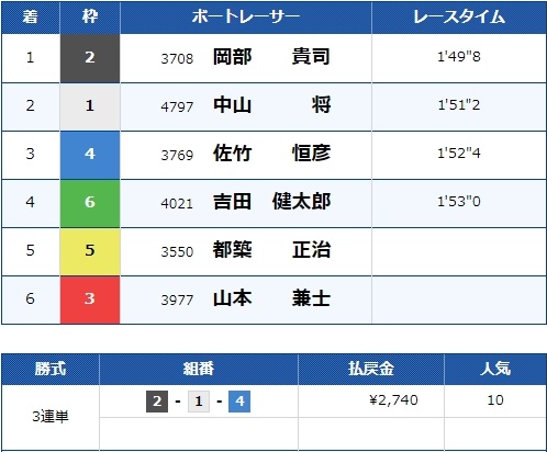 - 【1号艇】:佐藤 隆太郎選手(A2/東京)