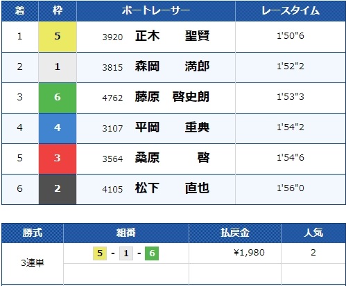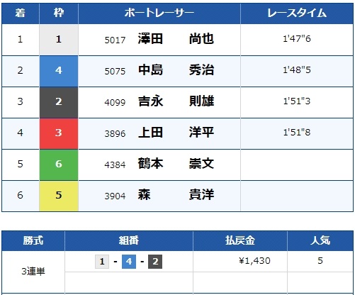 そのまま1号艇を差して一着となり見事的中です!