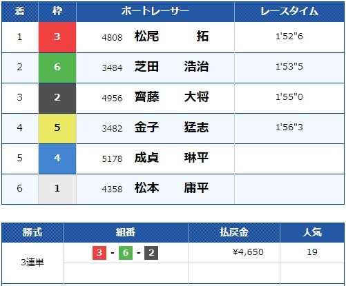 - 【3号艇】:松尾 拓選手(A2/三重)