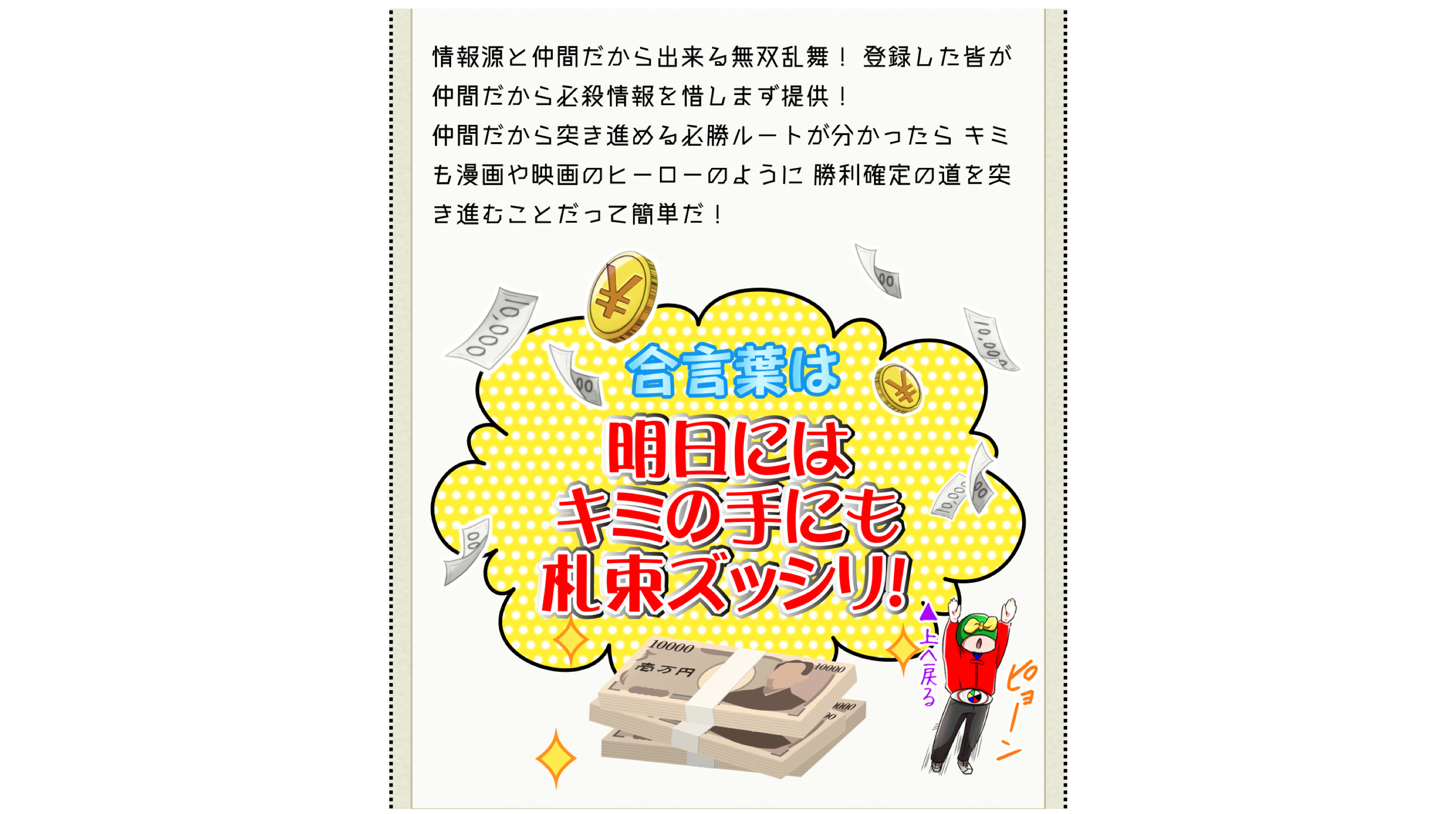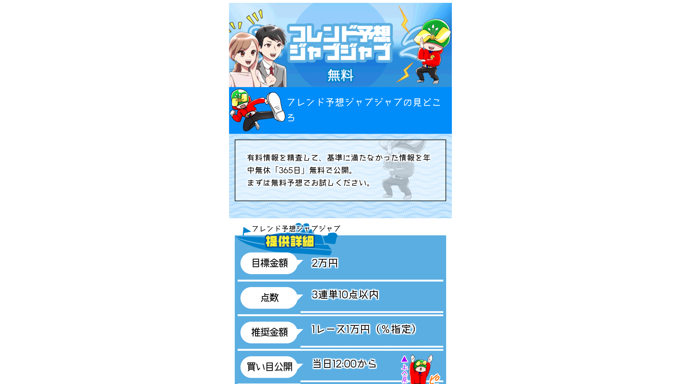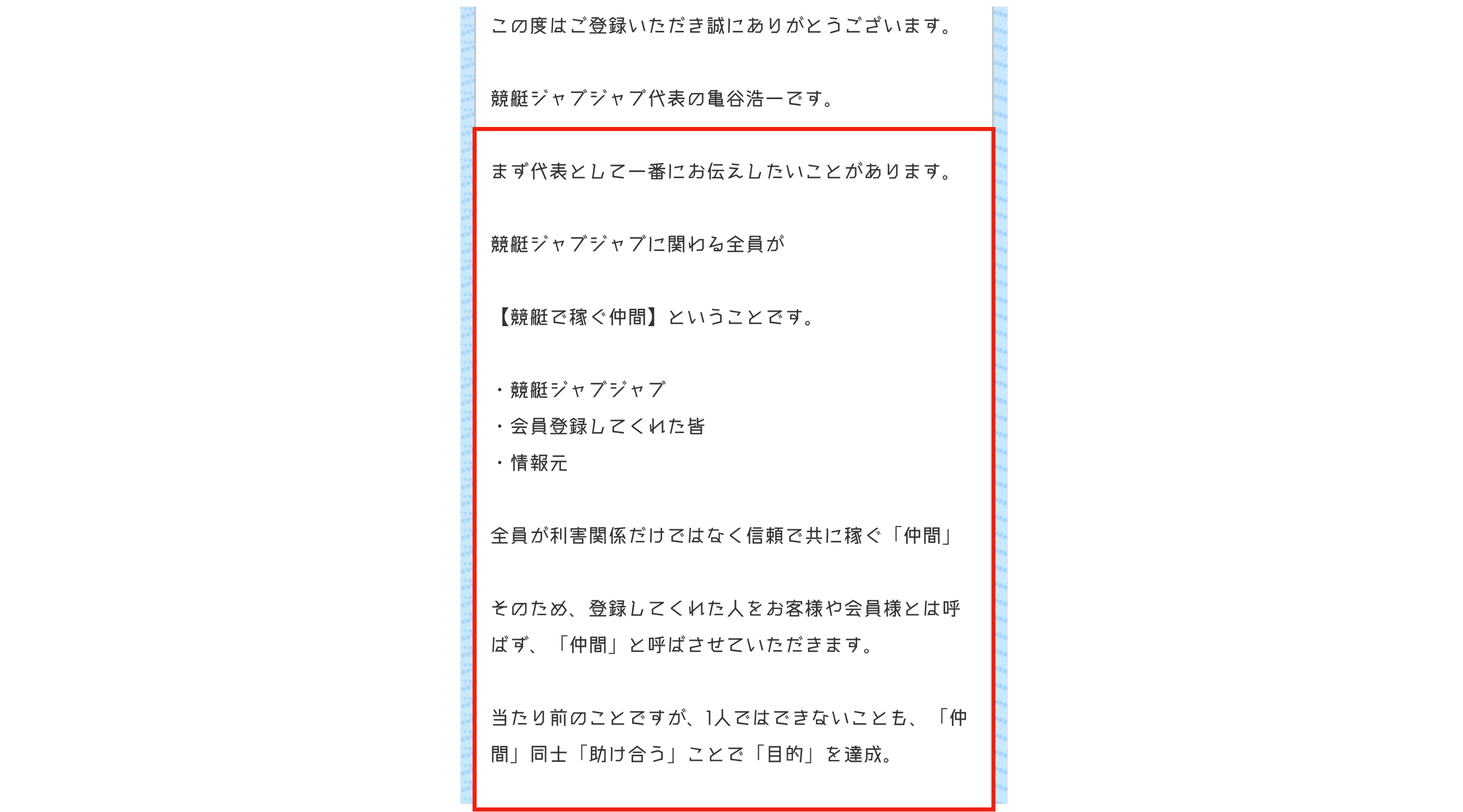 さらに漫画を読み進めていくと、競艇予想サイト「競艇ジャブジャブ」のテーマが記載されていたわ。