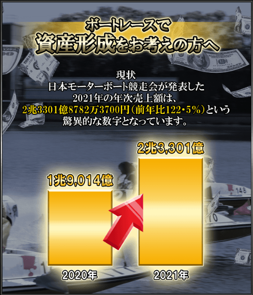 ボートレース(競艇)の2021年の売上額は2兆3301億8782万3700円。
