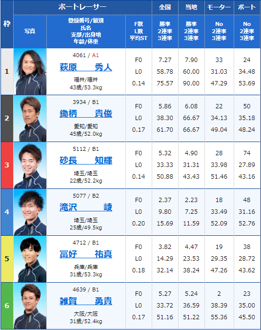 - 【1号艇】雑賀勇貴:B1(大阪支部)
