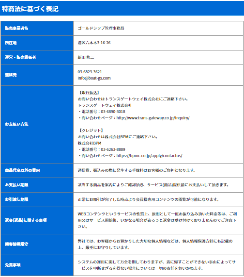 電話番号も検索してみたが、競艇予想サイトの運営は「ゴールドシップ」のみのようだ。