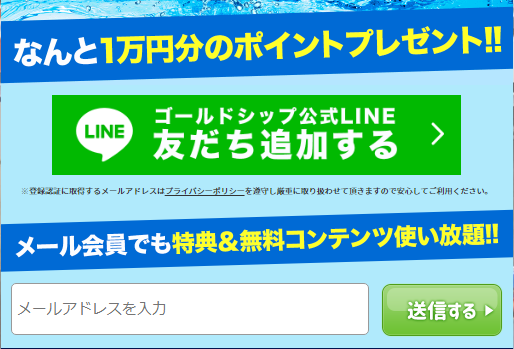 登録特典は10,000円分のポイントで、「メール会員でも特典&無料コンテンツ使い放題」と書いてあるけどそれは普通なので、特にこれといった特徴はない。