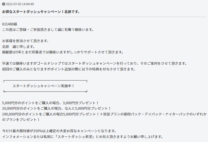 ドカフネでは、「ゴールドシップ」を安っぽいサイトデザインと利用規約の怪しい点から、悪質な競艇予想サイトだと判断した。