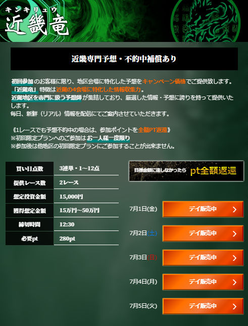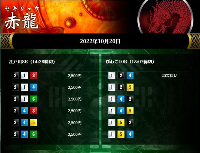 というわけで、今回は的中率特化型といわれる「赤龍」プランに実際に3日間参加してみて、その実力を確かめていきたいと思います。