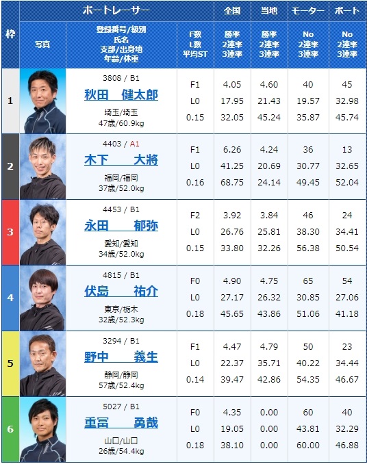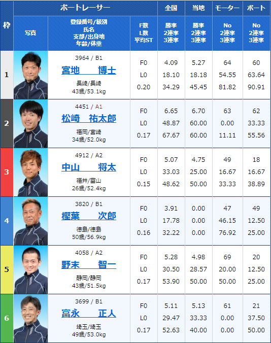 - 6号艇:今井貴士(A1級・福岡)