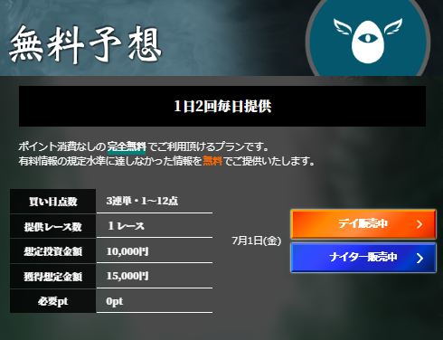 - 無料予想は毎日デイ・ナイター2回提供