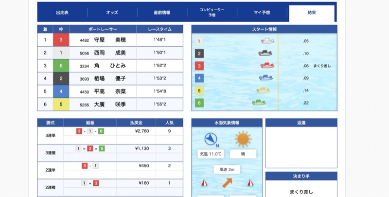 1号艇・西田選手のスタート次第ではあるが、ここの2艇には注目したい。