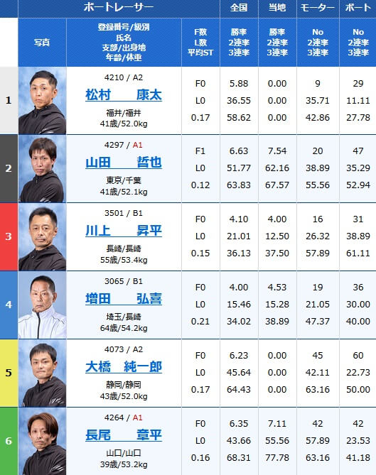 - 3号艇:川上昇平(B1級・長崎)