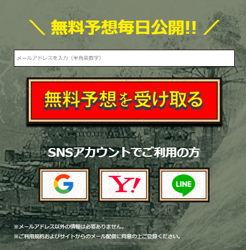 無料予想は365日毎日提供されるそうだが、概要が一切書かれていない。