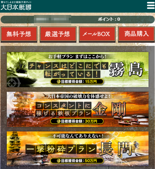 競艇予想サイト「大日本艇國」の会員ページ