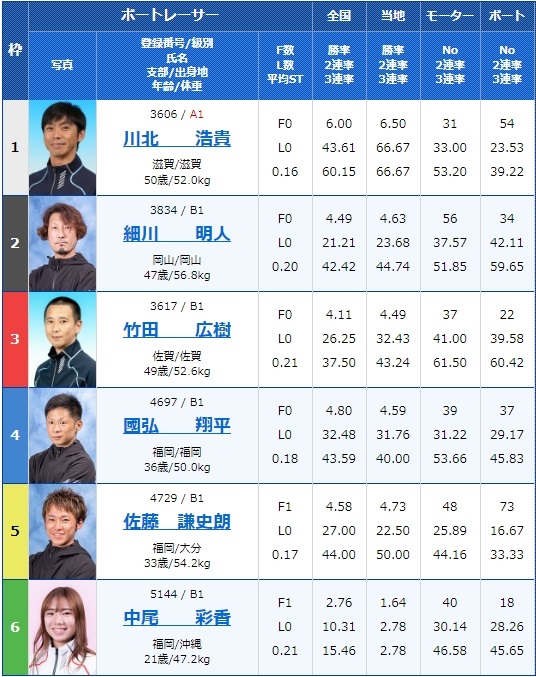 - 【1号艇】:川北浩貴選手(A1/滋賀)