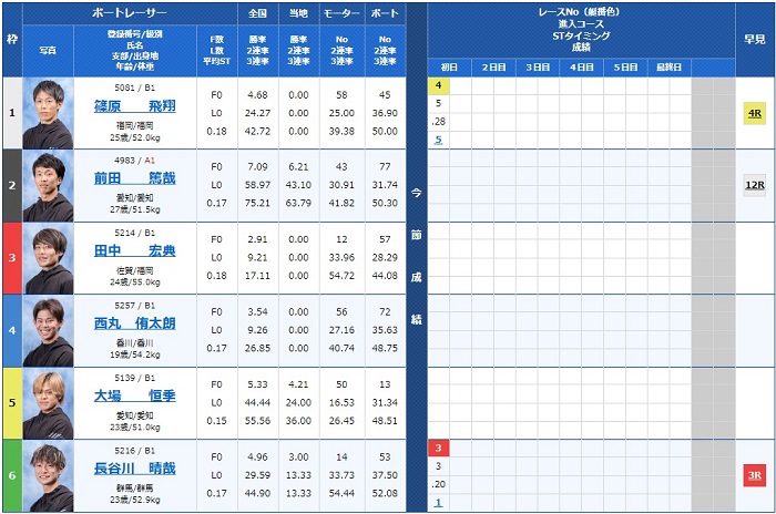 - 【3号艇】:村上功祐選手(A2/大阪)