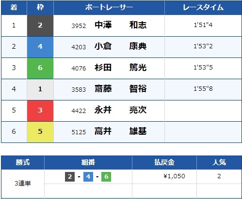 - 【2号艇】:中澤和志選手(A1/埼玉)