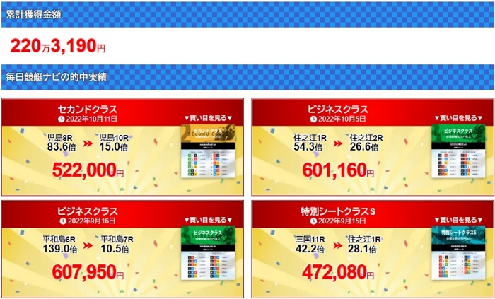 競艇ジェットの直近の的中実績を見てみると、コンスタントに的中しており、言うほど成績は悪くない印象です!