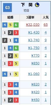 また、3号艇にはA2北中元樹選手が入っているため、インコースの3艇が順当に人気しています。