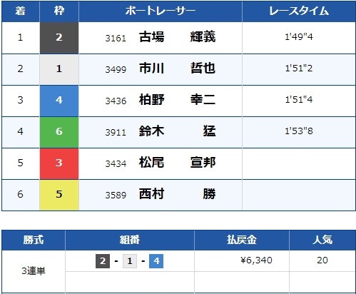 1号艇に実力十分な西山昇一選手がいる中で、佐々木康幸選手が頭に来ればなかなかの配当が期待できますが果たして結果はどうなるでしょうか!?