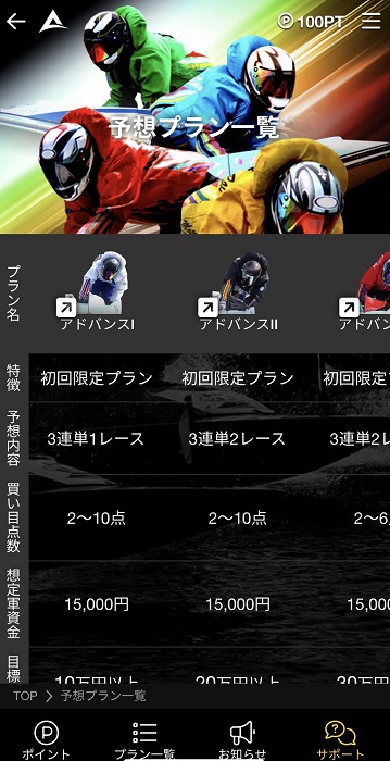 競艇アドバンスの有料予想は全部で10個用意されています!